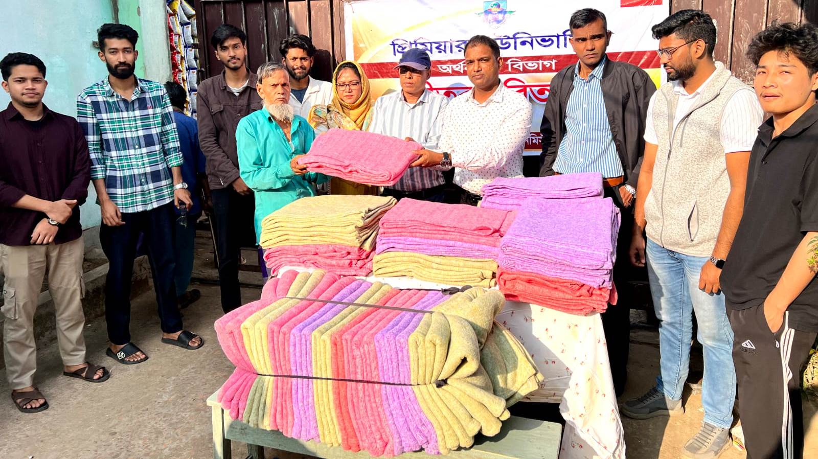 Winter Clothing Distribution Among Cold-Affected People Organized by the Department of Economics, Premier University.